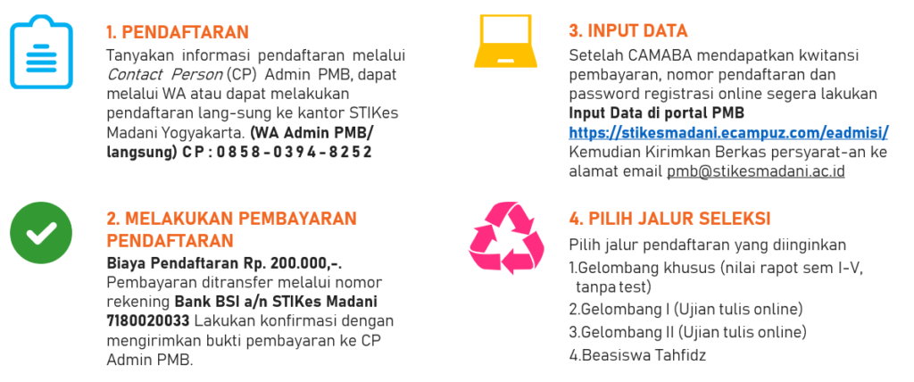 “Apa yang terlintas saat mende-ngar kata STIKes Madani Yogya-karta ? Islami, Cendikia, Profesional atau Kampus Rasa Pesantren? Ini bukan hanya sekedar Brand Awareness saja, Alhamdulillah tidak terlepas dari pertolongan Allah kami di didik dan dibentuk menjadi Tenaga Ke-sehatan yang Profesional dengan memperhatikan syariat islam se-suai dengan pemahan salafush shalih, InsyaAllah. Ilmu Kesehatan, Ilmu Agama, Pengalaman Organisasi, Ilmu Thibbun Nabawi, Tahfizul Qur'an, Praktik di Rumah sakit Umum maupun Rumah Sakit Swasta kami dapatkan di STIKes Madani Yogyakarta.Selain ilmu yang luar biasa banyaknya, kami juga di didik oleh tenaga pengajar yang Maa Syaa Allah sangat Profesional di bidangnya dan sabar dalam membimbing kami hingga bisa bermamfaat untuk umat InsyaAllah.Pesan untuk yang akan atau yang sedang berjuang di STIKes Madani Yogyakarta."Jika kamu tidak sanggup menahan Lelahnya Belajar, maka kamu harus sanggup menahan perihnya kebodohan" (Imam Syafi'i). Terus belajar baik ilmu maupun adab, Seorang penuntut ilmu, apabila tidak menghiasi ilmu dengan akhlak-akhlak mulia maka tidak ada faedahnya menuntut ilmu.